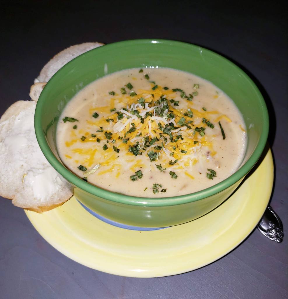 Garnish as desired. Suggestions: Shredded cheese; additional bacon pieces; chopped green onions; chopped chives; sour cream